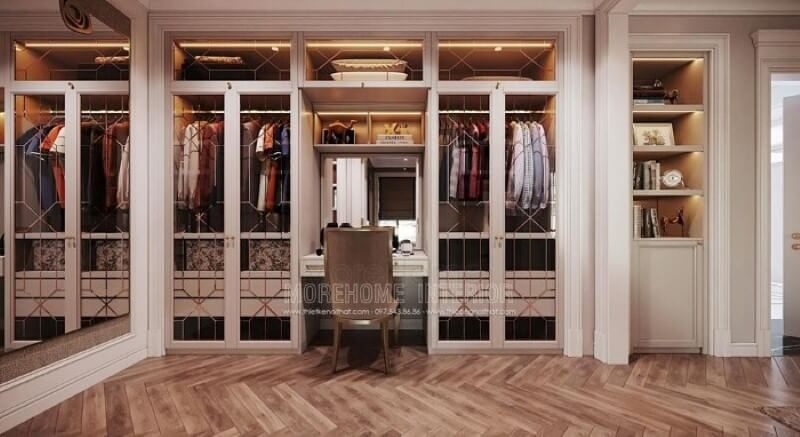 Tủ quần áo nhiều ngăn nhưng lại giúp bạn lựa đồ một cách nhanh chóng từ cánh tủ kính cường lực đẹp sang trọng.