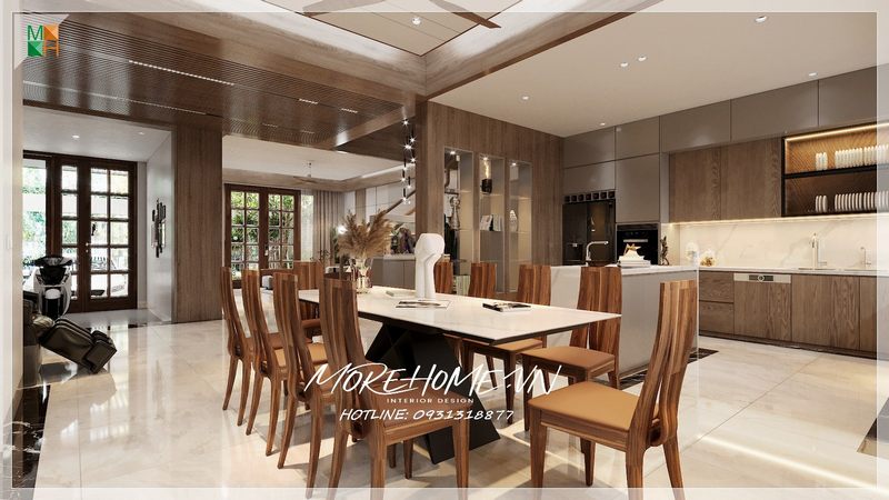 Thi công nội thất phòng ăn, bàn ăn hiện đại và đẹp mắt tại căn biệt thự hiện đại ở Hà Tĩnh đã hoàn thành.