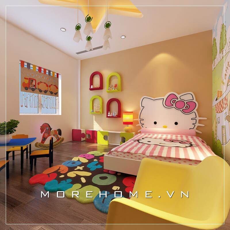 Thiết kế nội thất phòng ngủ bé gái hiện đại, trẻ trung và năng động