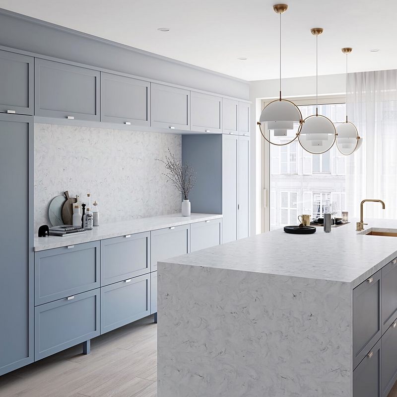 Ấn tượng với đảo bếp mặt đá Himacs vân mây cao cấp